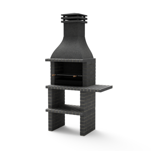 Made of refractory concrete and brick. Complete side table to use with brick BBQs. Compatible with CALIFORNIA XL PLUS series. Gray concrete and orange brick.