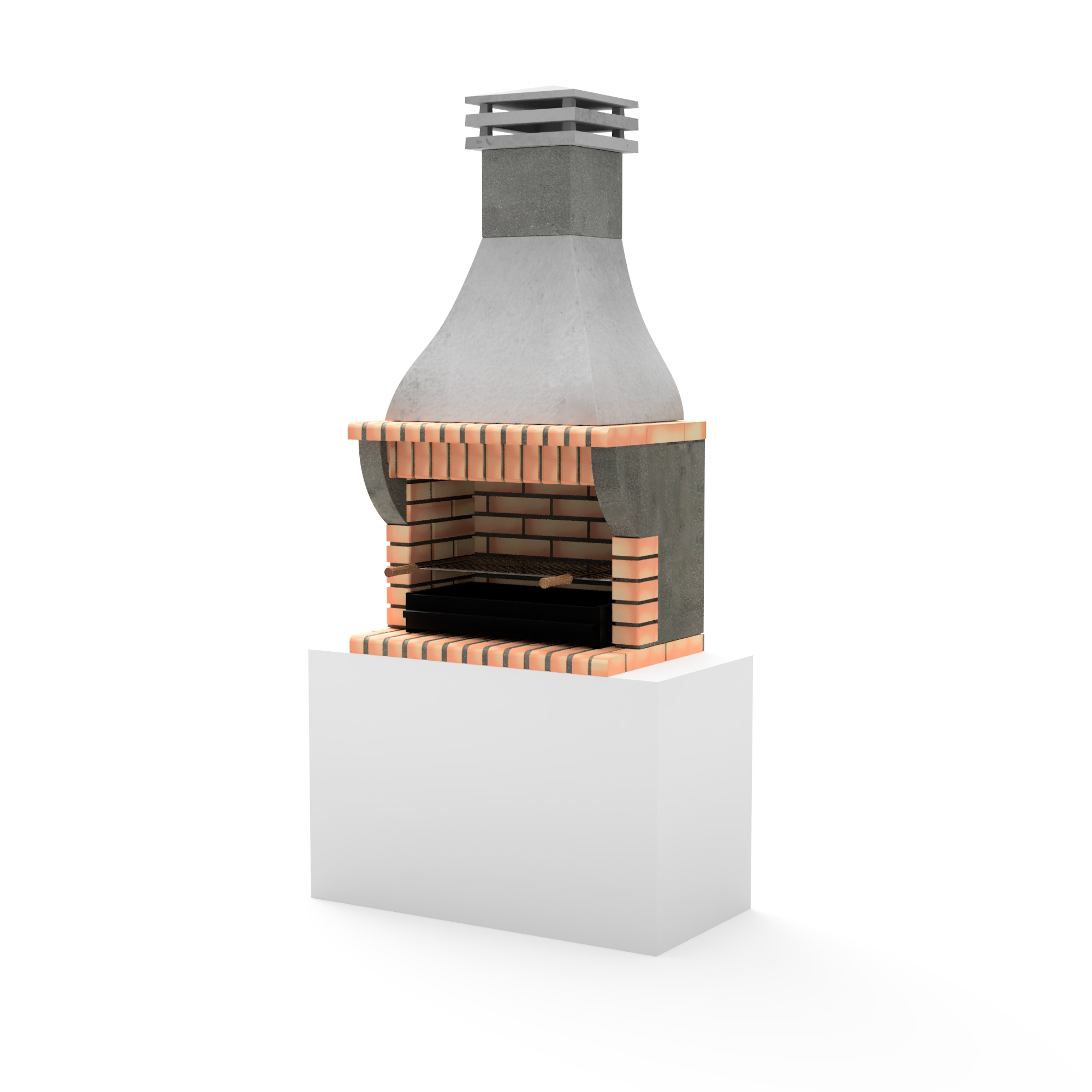 Barbecue made of refractory gray concrete and light orange brick. Doesn’t need to be painted. Ideal use up to 6 people.