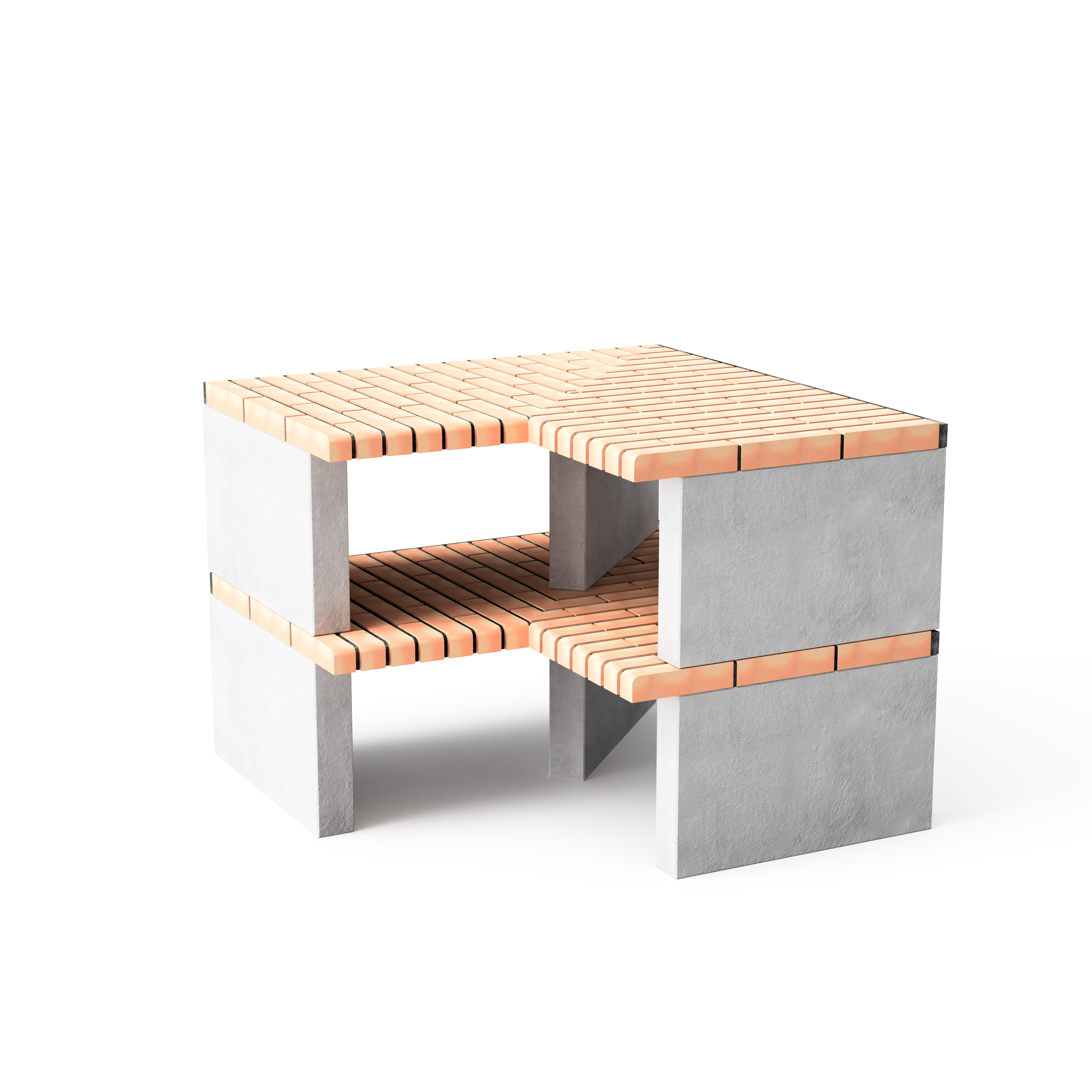 Module made of refractory concrete and orange brick.