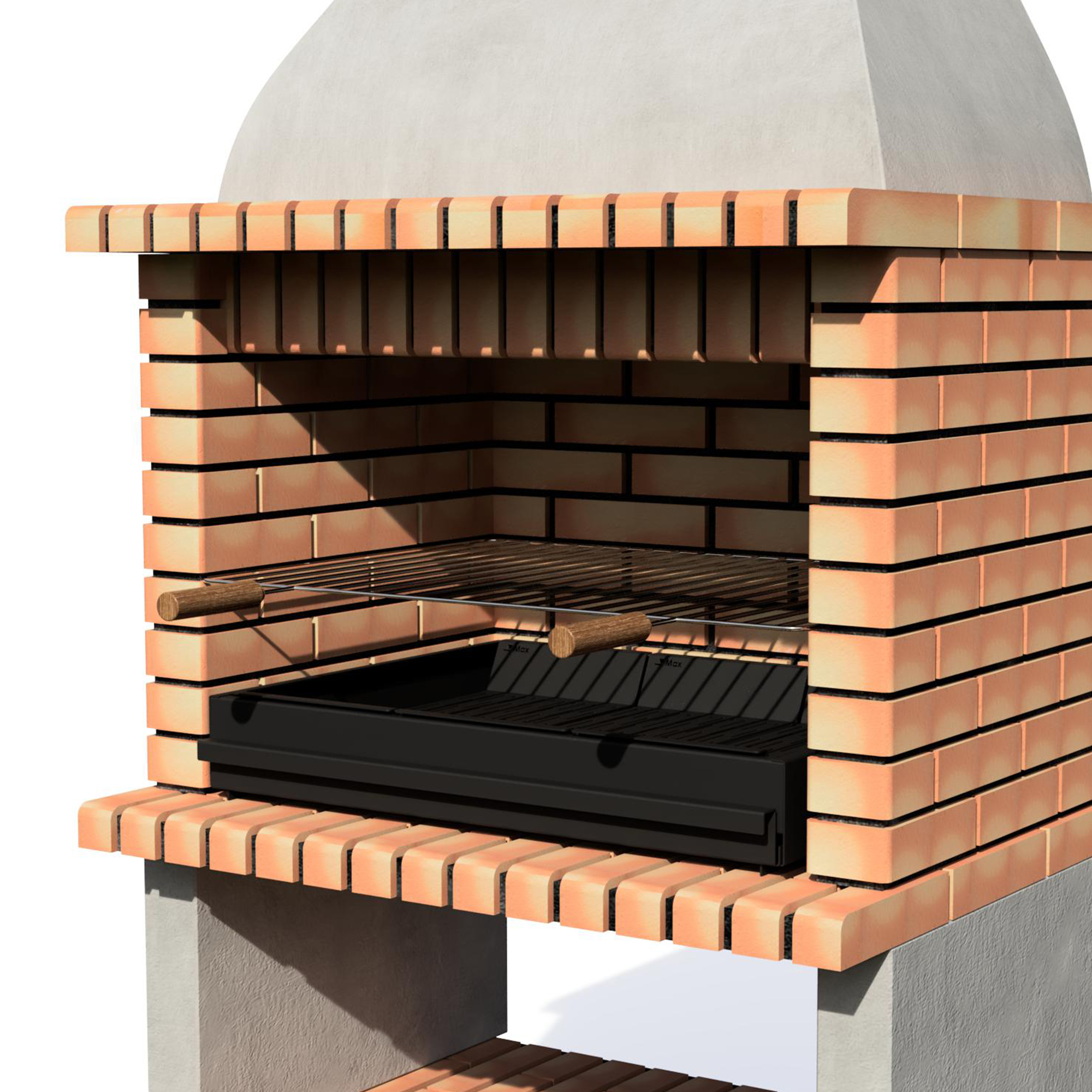 Barbecue made of white refractory concrete and orange brick.