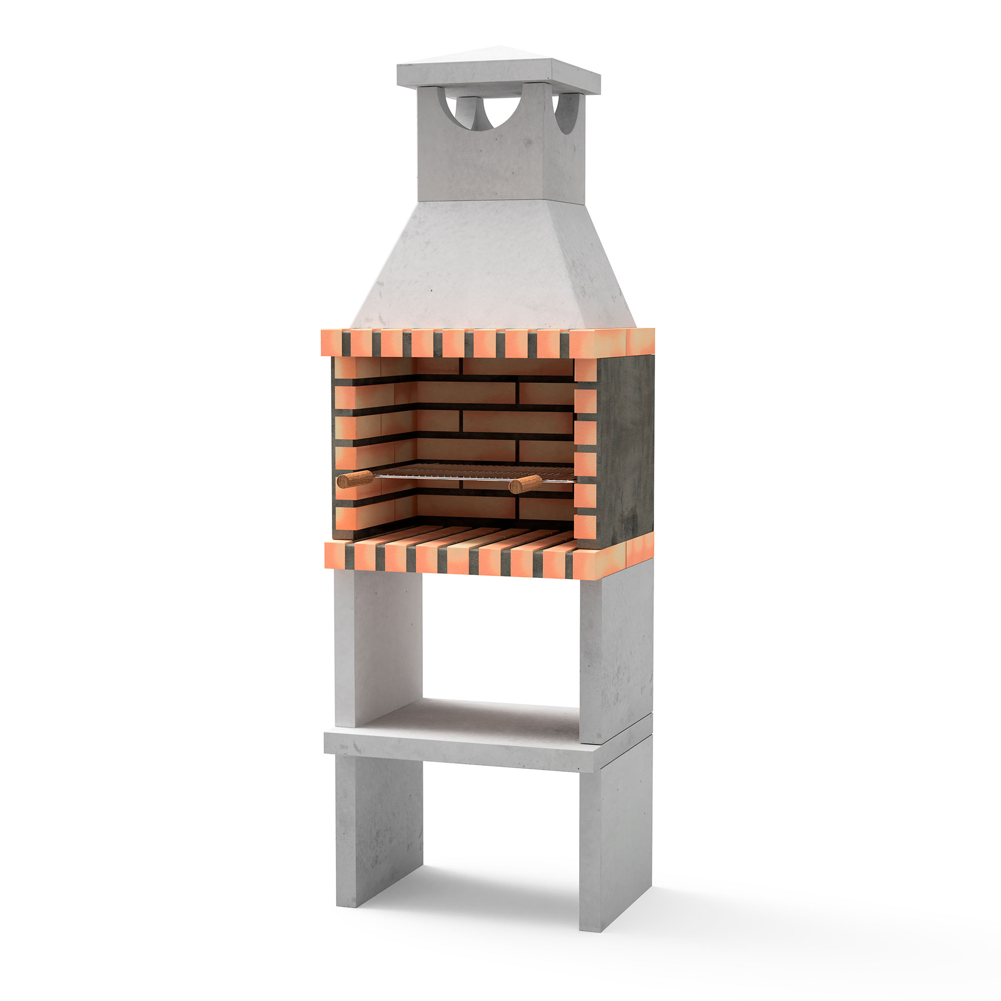 Barbecue made of refractory gray concrete and light orange brick. Zincked grill 51 x 35 cm. Ideal use up to 4 people.