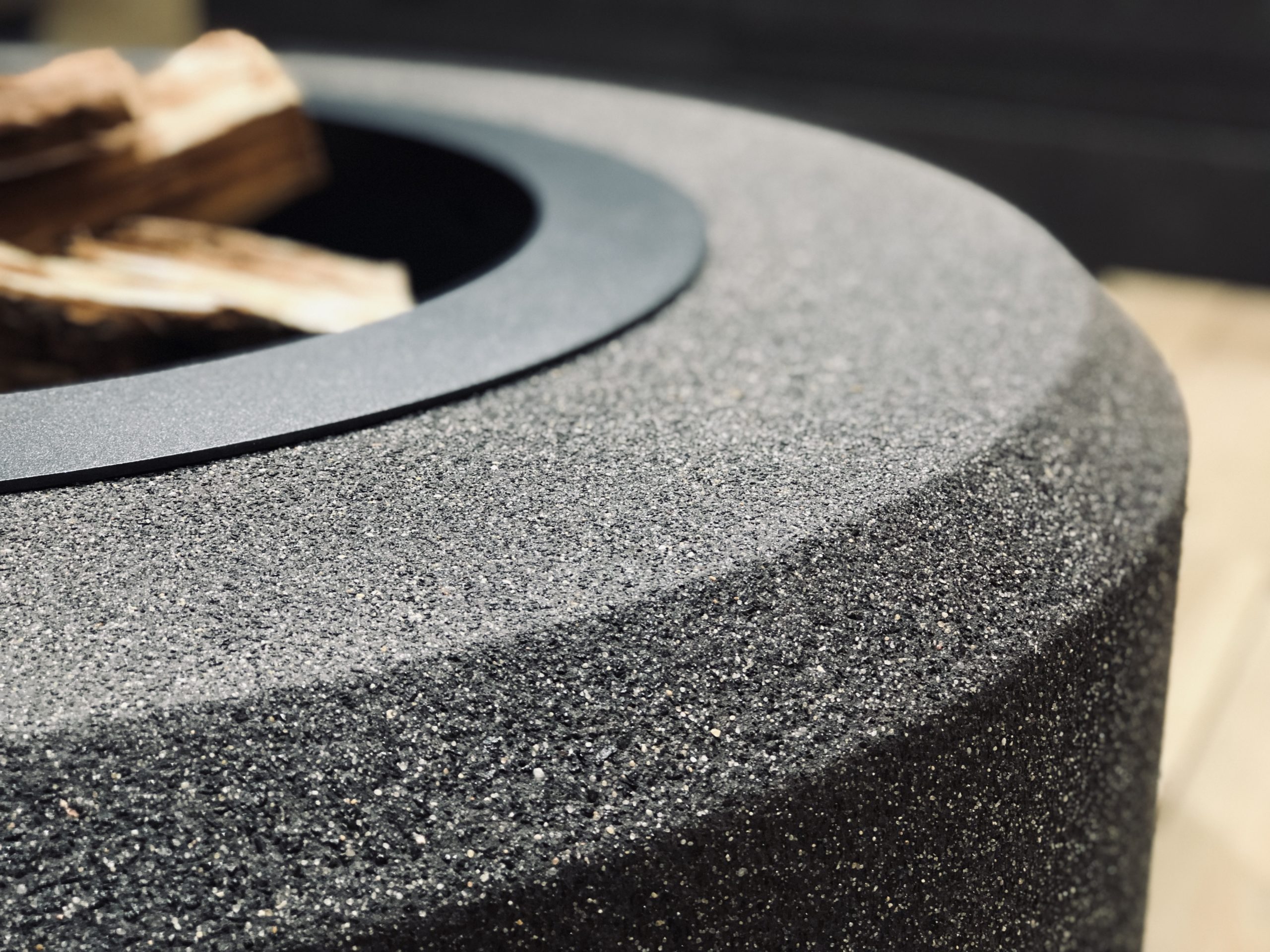 Smooth or textured concrete. 235 stainless steel or regular steel, with heat resistant powder coating. Black mate colour.