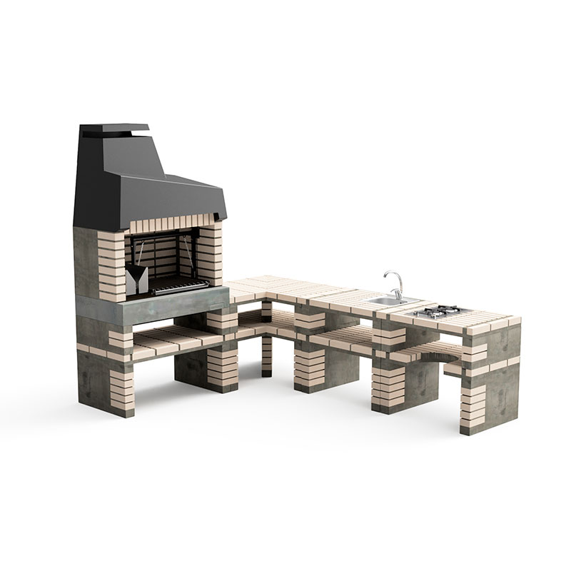 Contemporary design brick barbecue, with a very high performance. Cocking area made of refractory concrete and brick, with a high thermal eficiency.