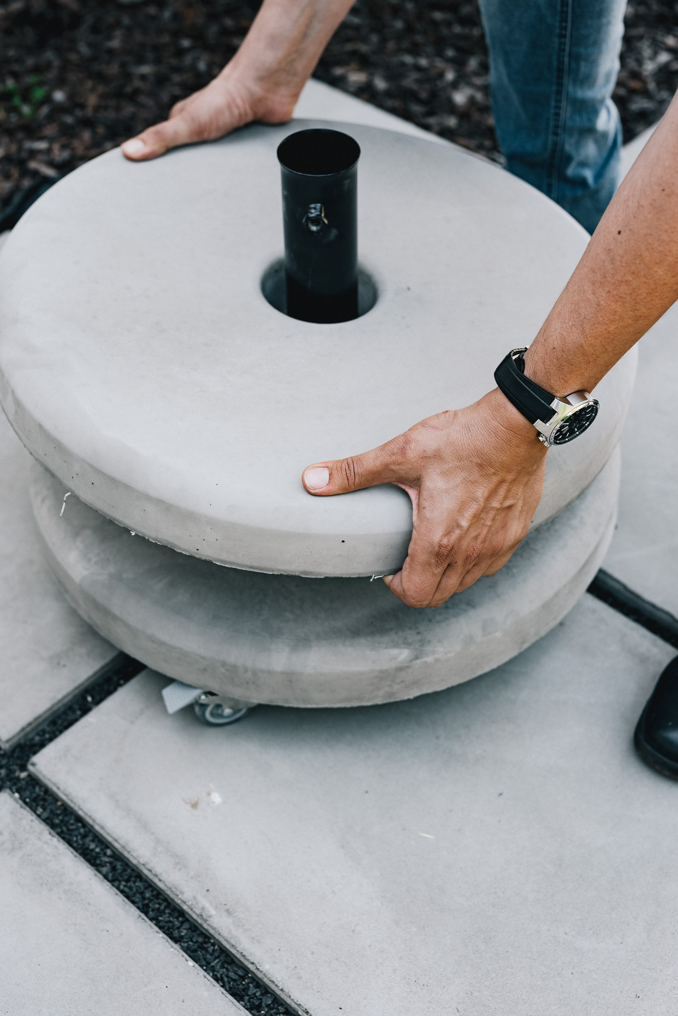 PRECAST CONCRETE - Poured concrete - Parasol stand in gray concrete with PP coloured cover to ma