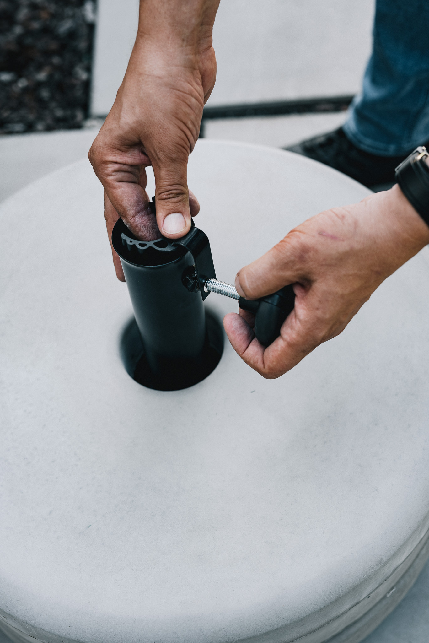 – Parasol base, compatible with HALTER 30 Weight Plate, allowing to add weight in multiples of aproximately 30 Kg (Dumbbell concept)